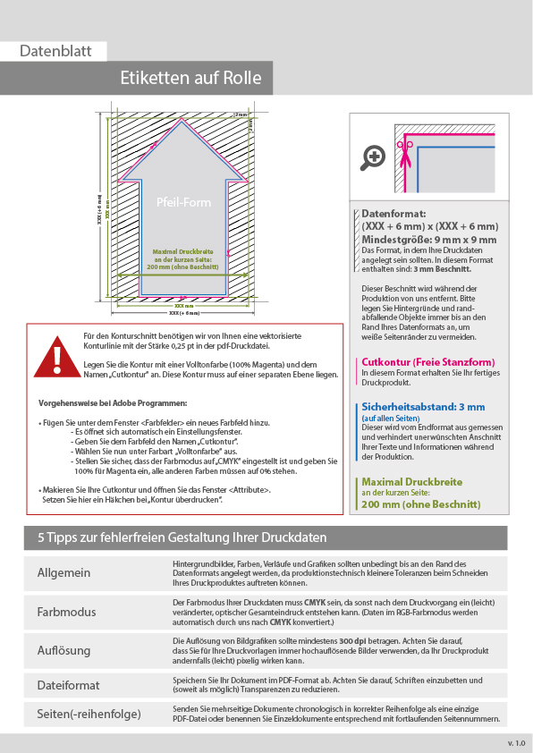 Hochwertige Etiketten auf Rolle in Pfeil-Form