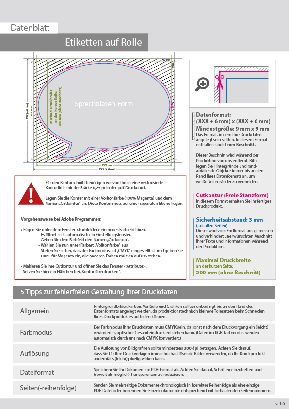 Hochwertige Etiketten auf Rolle in Sprechblase-Form