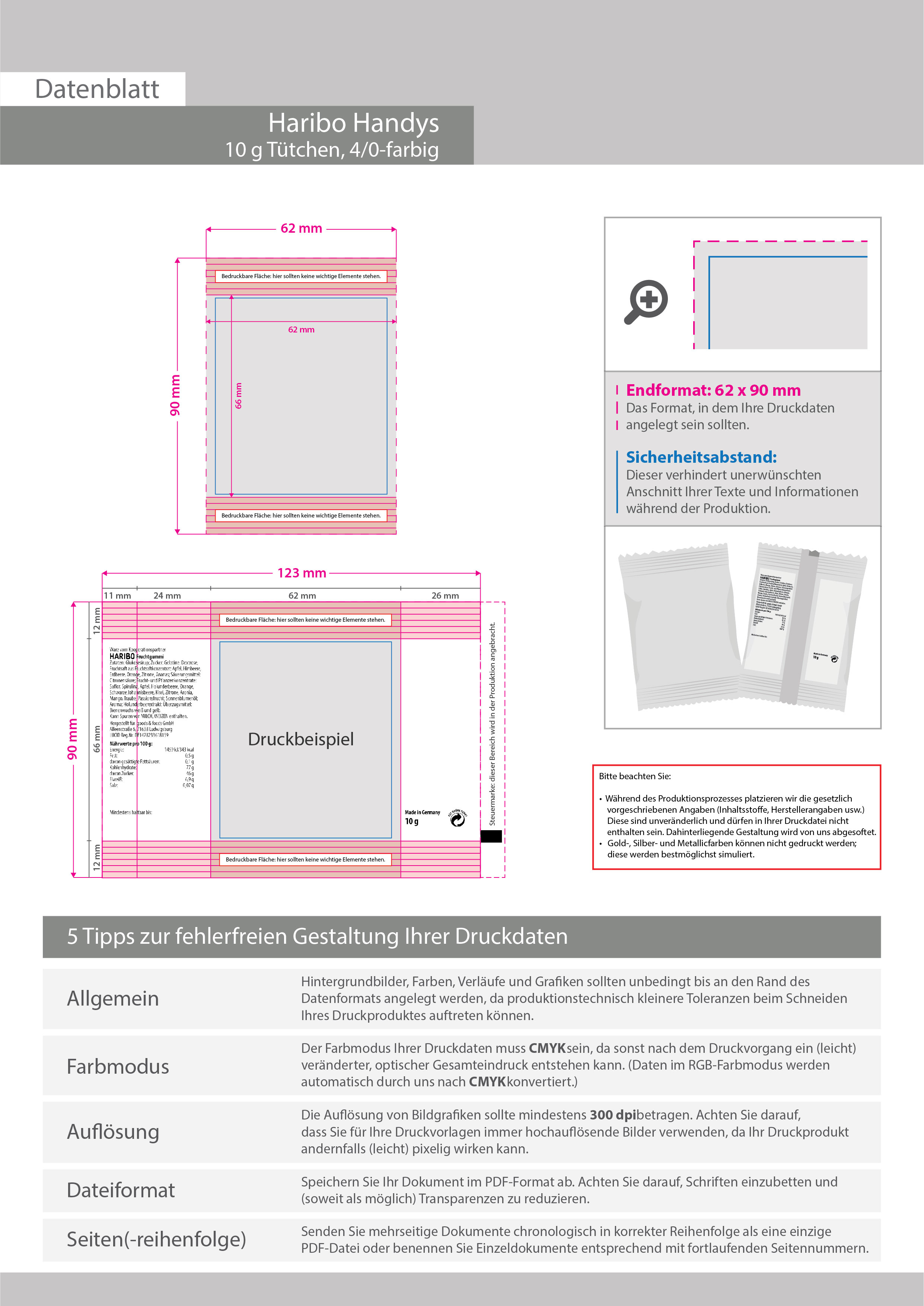 HARIBO Handys, 10g Tütchen, 4/0 farbig einseitig bedruckt