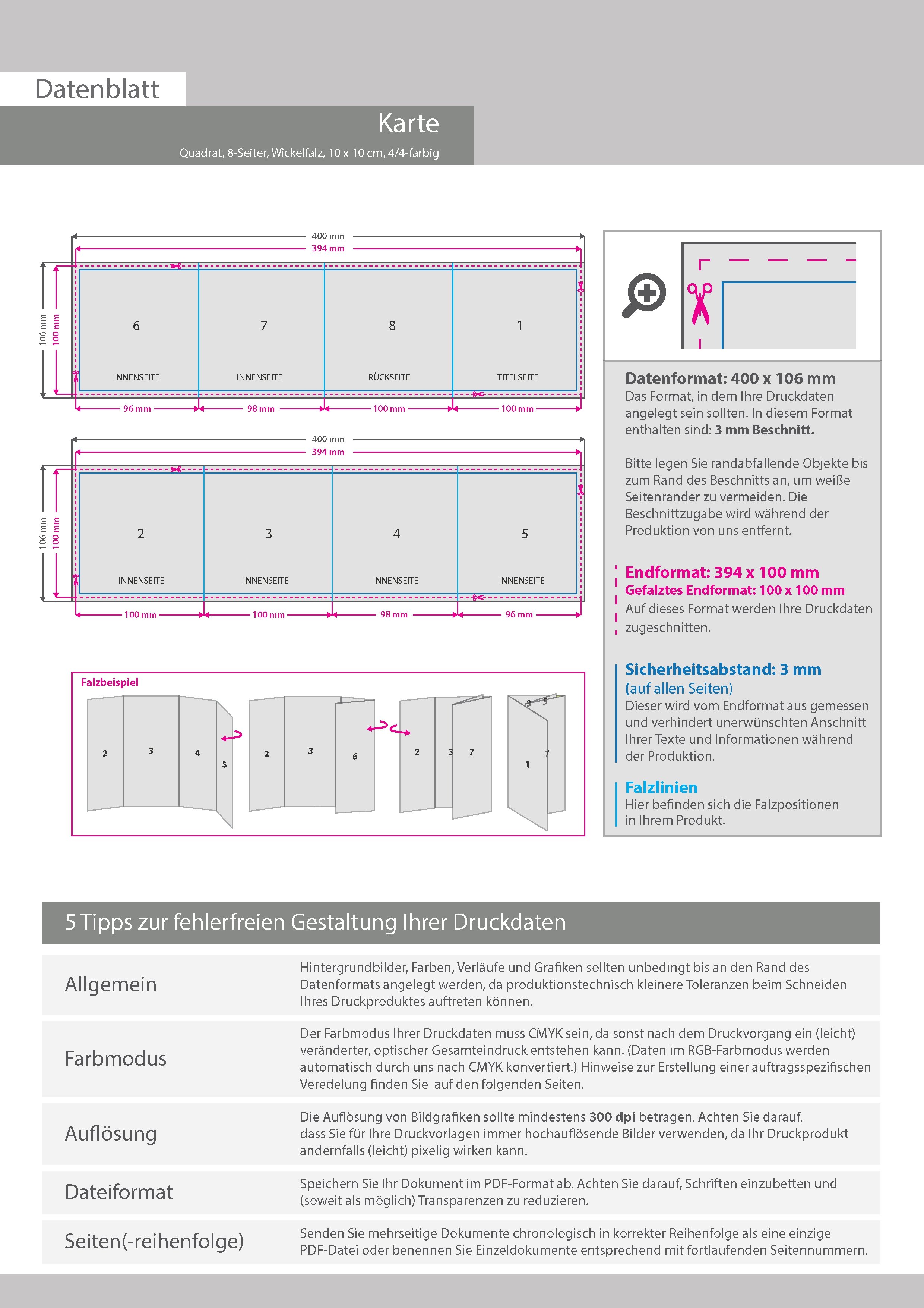 Geburtstagskarte, gefalzt auf Quadrat 10,0 cm x 10,0 cm, vertikaler Wickelfalz, 8-seitig