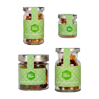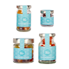 Die Flaschen bestehen aus hochwertigem, lebensmittelgeeignetem Glas und werden mit einem Schraubdeckel aus Aluminium verschlossen. Sie sind 125 mm hoch und verfügen über einen Durchmesser von 55 mm. Sie sind gefüllt mit ca. 97 g gezuckerten Fruchtgummis, was einer Anzahl von 17 bis 18 Stück pro Glas entspricht. Bei den leckeren Fruchtgummis haben Sie die Wahl zwischen den köstlichen Sorten Holunderschorle, Grapefruitschorle sowie Apfelschorle. Bei sachgerechter Lagerung sind sie zwölf Monate haltbar.