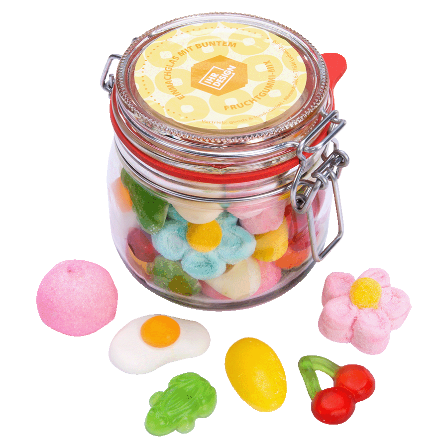 Fruchtig, süß und bei Klein und Groß gleichermaßen beliebt – das sind unsere Fruchtgummis in der Glasflasche! Diese süßen Werbegeschenke sind vielseitig einsetzbar: Verteilen Sie sie beispielsweise am Point of Sale, an Ihrem Messestand oder auf Veranstaltungen, die Ihr Unternehmen organisiert oder sponsert.